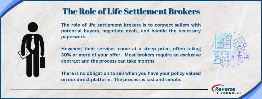 Life settlement brokers have traditionally played a crucial role in helping policyholders sell their life insurance policies. The role of life settlement brokers is to connect sellers with potential buyers, negotiate deals, and handle the necessary paperwork. However, their services come at a steep price, often taking 30% or more of the sale proceeds.